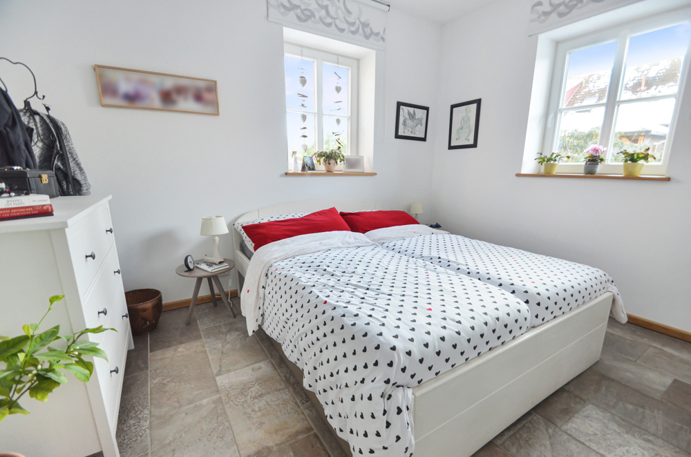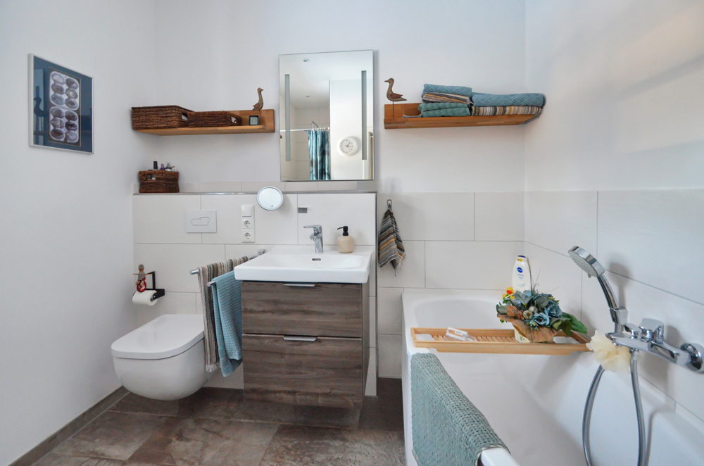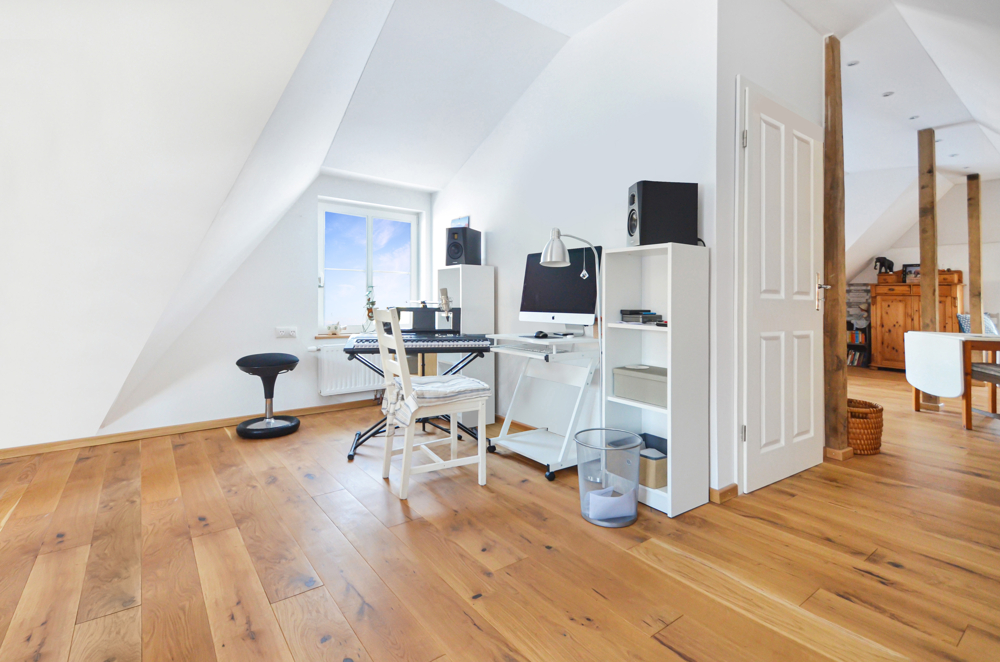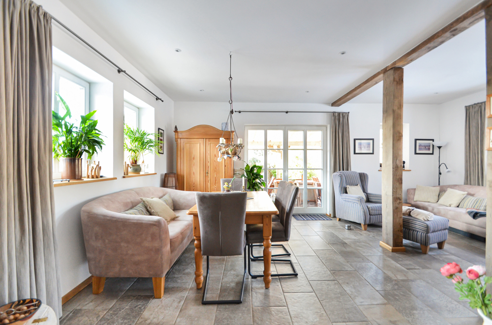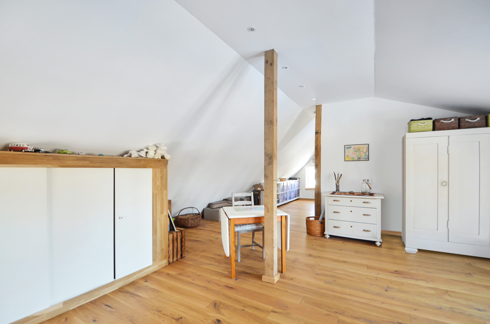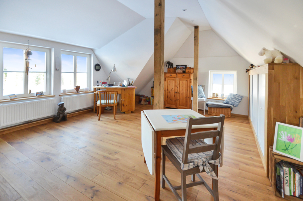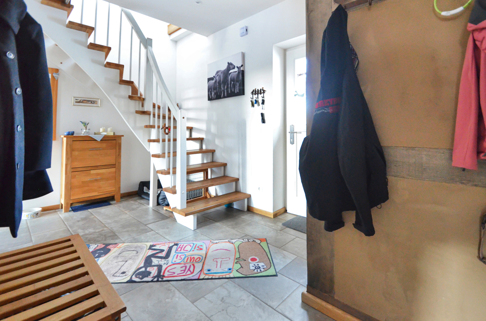 -Bodenbelag: EG moderne Fliesen, OG Eichenparkett