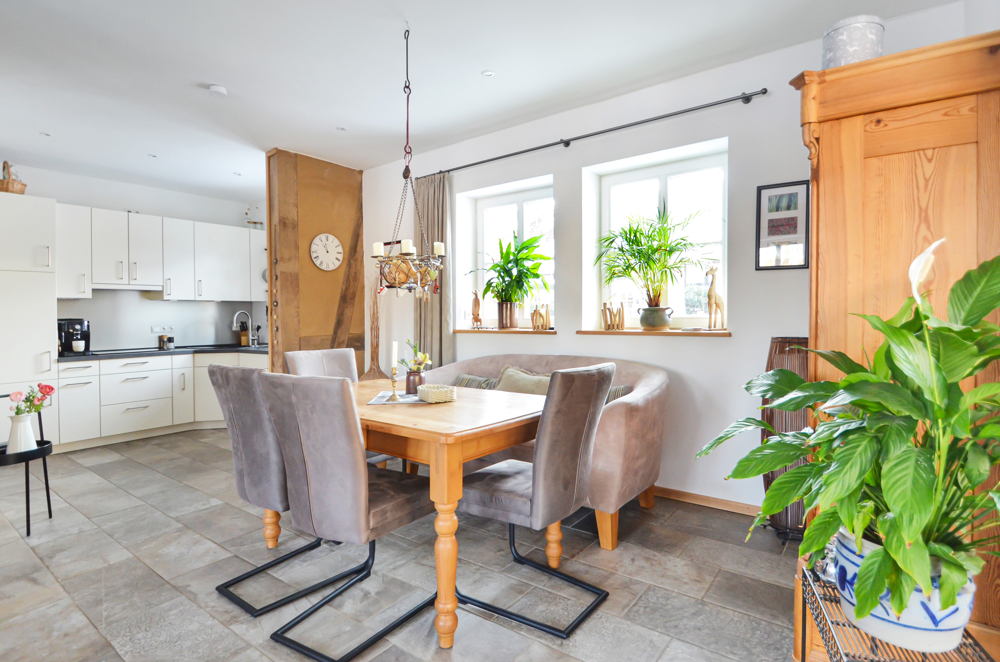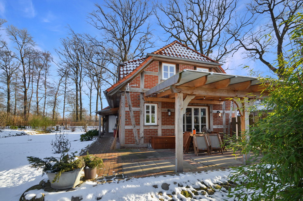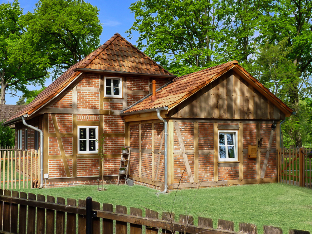 Manche Häuser erzählen Geschichten. Dieses liebevoll neu aufgebaute Fachwerkhaus tut genau das – und schreibt sie gleichzeitig weiter. Im Jahr 2021 wurde es mit großer Sorgfalt und Respekt vor der historischen Substanz ausgebaut und energetisch auf den heutigen Stand gebracht. Entstanden ist ein Ort, der Vergangenheit und Gegenwart in perfekter Harmonie vereint. Eingebettet in ein wunderschönes Grundstück mit direktem Zugang zum „Schwarzwasser“, umgeben von altem Baumbestand und liebevoll angelegten Beeten, bietet dieses Zuhause Ruhe, Natur und ein Lebensgefühl, das man nur selten findet. Sie hören das Rascheln der Blätter, sehen das Licht zwischen den Bäumen tanzen und spüren sofort: Hier darf ich ankommen! Schon beim Betreten empfängt das Haus mit einer behaglichen, warmen Ausstrahlung. Der offen gestaltete Wohn-, Ess- und Küchenbereich bildet das Herzstück des Erdgeschosses – lichtdurchflutet, großzügig und geprägt von sichtbaren Holzbalken, die dem Raum Tiefe und Authentizität verleihen. Vom Wohnbereich aus öffnet sich der Zugang zur überdachten Terrasse – ein geschützter Lieblingsplatz für jede Jahreszeit. Ob Frühstück im Sommerregen, ein Glas Wein am Abend oder einfach der Blick ins Grüne: Hier verschwimmen Innen-, und Außenleben auf wunderschöne Weise. Ergänzt wird das Erdgeschoss mit einem gemütlichen Schlafzimmer, einem stilvollen Bad mit Dusche und Badewanne sowie dem gelungenen Dielenbereich, der den Fachwerkcharme gekonnt unterstreicht. Das traumhafte Dachgeschoss erreichen Sie über die schicke Holztreppe. Es bietet einen großen, offenen Raum mit gemütlichen Ecken – perfekt zum Lesen, Arbeiten oder Entspannen – ein Rückzugsort mit ganz eigenem Charakter, der sich flexibel an Ihre Bedürfnisse anpasst. Im neu erstelltem Anbau befindet sich der Hauswirtschaftsraum, der stets trockenen Fußes durch den überdachten Eingang zu erreichen ist. Sind Sie auf der Suche nach einem Unikat und möchten ländlich – ehrlich – unverfälscht wohnen? Dann melden Sie sich gern.